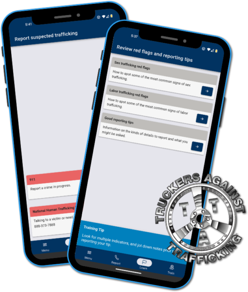You are invaluable in the fight against human trafficking. Download the TAT app today to help you identify and report instances of human trafficking. The TAT app includes the option to filter content based on your daily experience, recognize red flags, identify the best numbers to report human trafficking based on your location, and the option to report back to TAT what you’re seeing on the road and in your community. You can also get news and notifications directly from TAT, as well as gain on-the-go access to our free training courses.